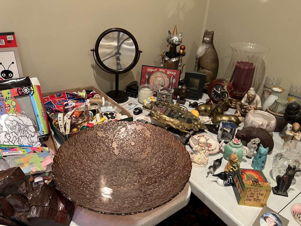 Table, Chairs, Bar Stools, Prints and Pictures, Lots of Cat Memorabilia, Games,