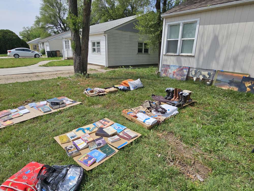 Lots of clothing- woman’s, men’s, toddler boys 24mo/2T. Kitchen items, child toys, etc. 8am-?? Friday-Sunday Ending at noon on Friday. Other days will be all day.
