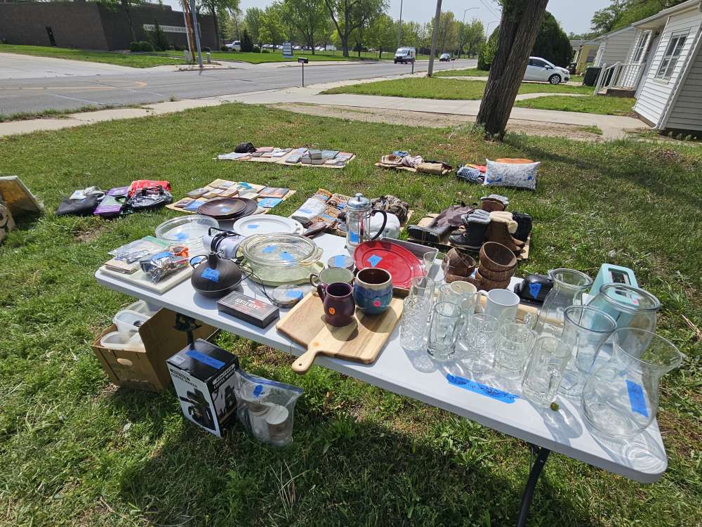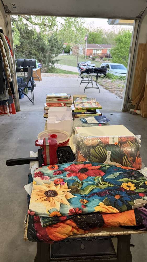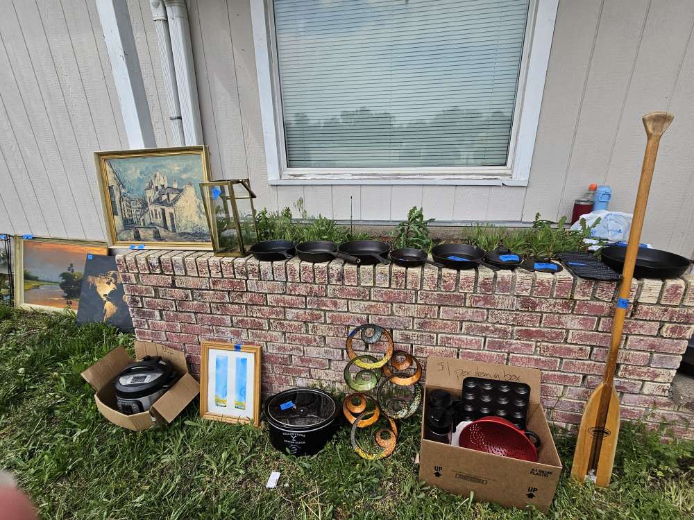 Stop by and see us! Here till 6 tonight and open from 8-noon tomorrow. Lots of good stuff and not just junk.Some of the items for sale:Cast iron in great condition Bean potBooks for a dollarGlass cubesExcersise stepPaintingsBeddingTupperwarePrincess House casserole dishes with lidsInsta pot (only used twice)Christmas decorEct. Ect.