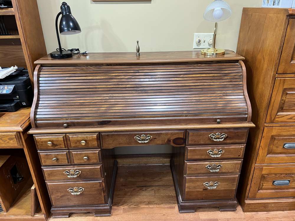 Reclining Loveseat, Rolltop Desk, Oak File Cabinet, Oak Computer Desk, 2 Dining