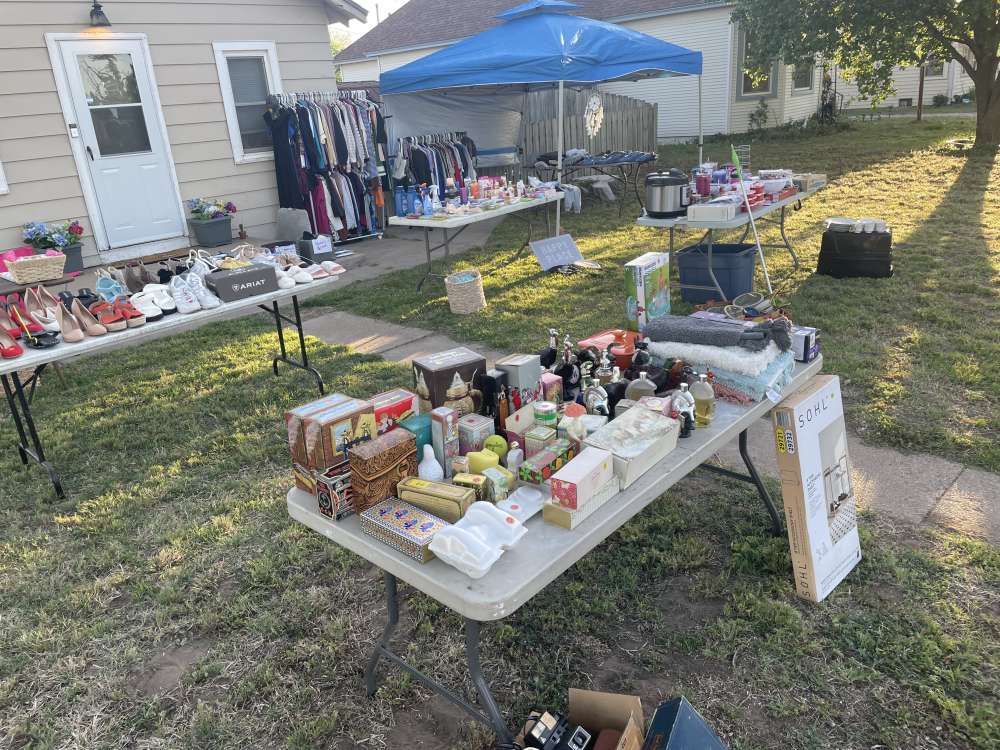 Friday & Saturday, April 24-25. Location: Corner of 26th & Waldron Antiques, Vintage ceramics, collectibles, LIFE magazines from the 1960's, collectible newspapers, books, recipe books, glassware, chest freezer, Big & Tall 2XL shirts, towels, small appliances, housewares, Christmas decorations, vinyl records, CD's, pictures, yard tools, mid 1960's cedar chest wooden toys and wooden toy chest, NASCAR diecast car collectibles, full size mattress and box springs, queen size mattress and box springs, small TV stand, small tube TV, microwave cart,